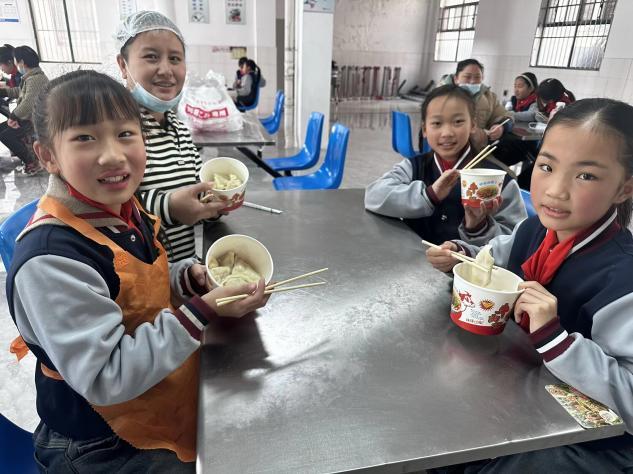 当热气腾腾的饺子出锅,同学们迫不及待地端起小碗,吹了吹热气就咬下一口。“第一次包饺子,吃起来特别香!”101班的吴梓钰同学鼓着腮帮子,满脸自豪地说。501班胡钰菡妈妈看着孩子们的笑脸,忍不住感慨:“这样的活动既让孩子体验了传统,又增进了亲子情,太有意义了。”老师们也笑着说:“看着孩子们亲手制作、分享美食,感受到节气的温暖,这就是最好的文化传承。”