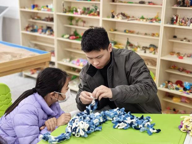 临近12月23日“错袜日”,日前武汉市青山区红钢城小学“小红花心育社”开展了“指尖编织・亲子同心”心理健康亲子课堂。24组报名家庭相约红钢城小学建五校区,在毛线交织中共赴创意治愈的心灵之约。