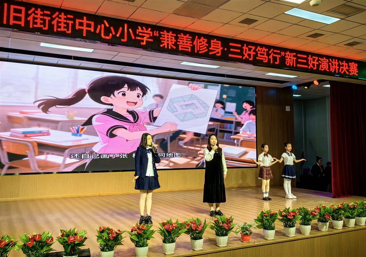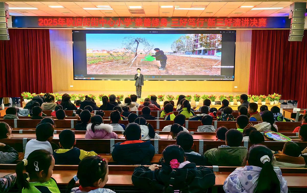 12月25日,武汉市新洲区旧街中心小学礼堂内掌声不断、气氛热烈,“兼善修身 三好笃行”主题演讲决赛在这里举行。师生同台,围绕“在校做个好学生、在家做个好孩子、在社会上做个好公民”的“新三好”主题,展开了一场知行融合的生动对话。