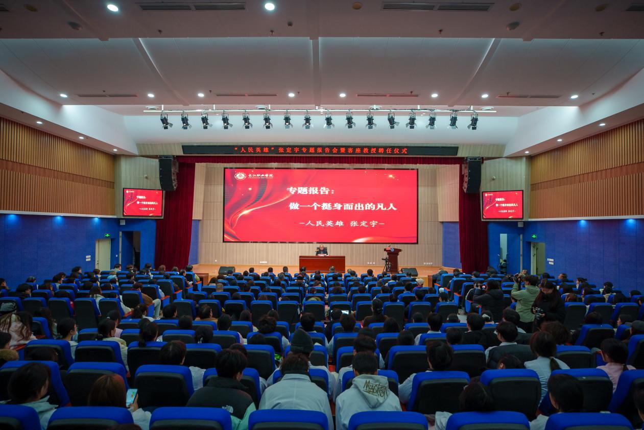 12月25日下午,长江职业学院学术报告厅内气氛庄重而热烈。“人民英雄”国家荣誉称号获得者、湖北江夏实验室主任张定宇以《做一个挺身而出的凡人》为题开讲,用真挚语言和感人经历诠释使命担当,为该校学子点亮技能报国的前行航标。