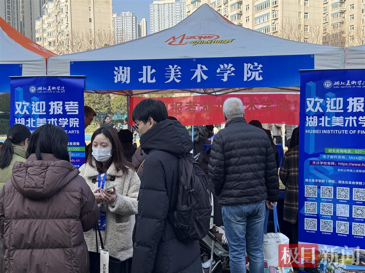 12月28日上午,楚天都市报极目新闻首届“全国普通高校招生艺术类公益咨询会”,在湖北日报传媒集团大操场顺利举行,汇聚华中科技大学、华中师范大学、武汉理工大学、中南民族大学、湖北美术学院等53所知名高校,为广大艺术考生和家长提供了一对一的权威答疑服务。活动吸引了数万人次通过线上与线下渠道积极参与互动。这也是极目新闻今年为助力考生和家长填报高考志愿,精心打造的第四场高招咨询会。