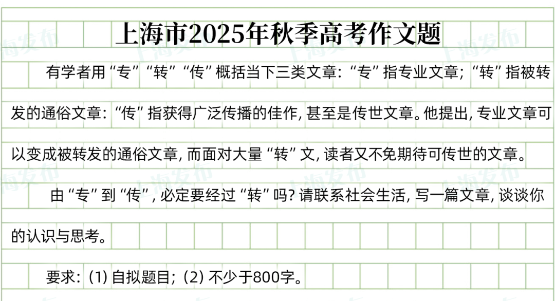 今天上午9:00,2026年上海市普通高校春季招生统一文化考试和2026年1月上海市普通高中学业水平合格性考试的首场语文科目考试顺利开考。今年春季高考作文题如下。