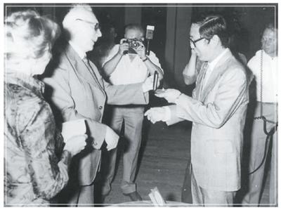 陈省身在赠丘成桐的书中扉页道:“余生六十岁矣,薪传有人,愿共勉之。”