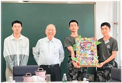 2025年9月10日,丘成桐(左二)与求真书院学生代表座谈交流。
