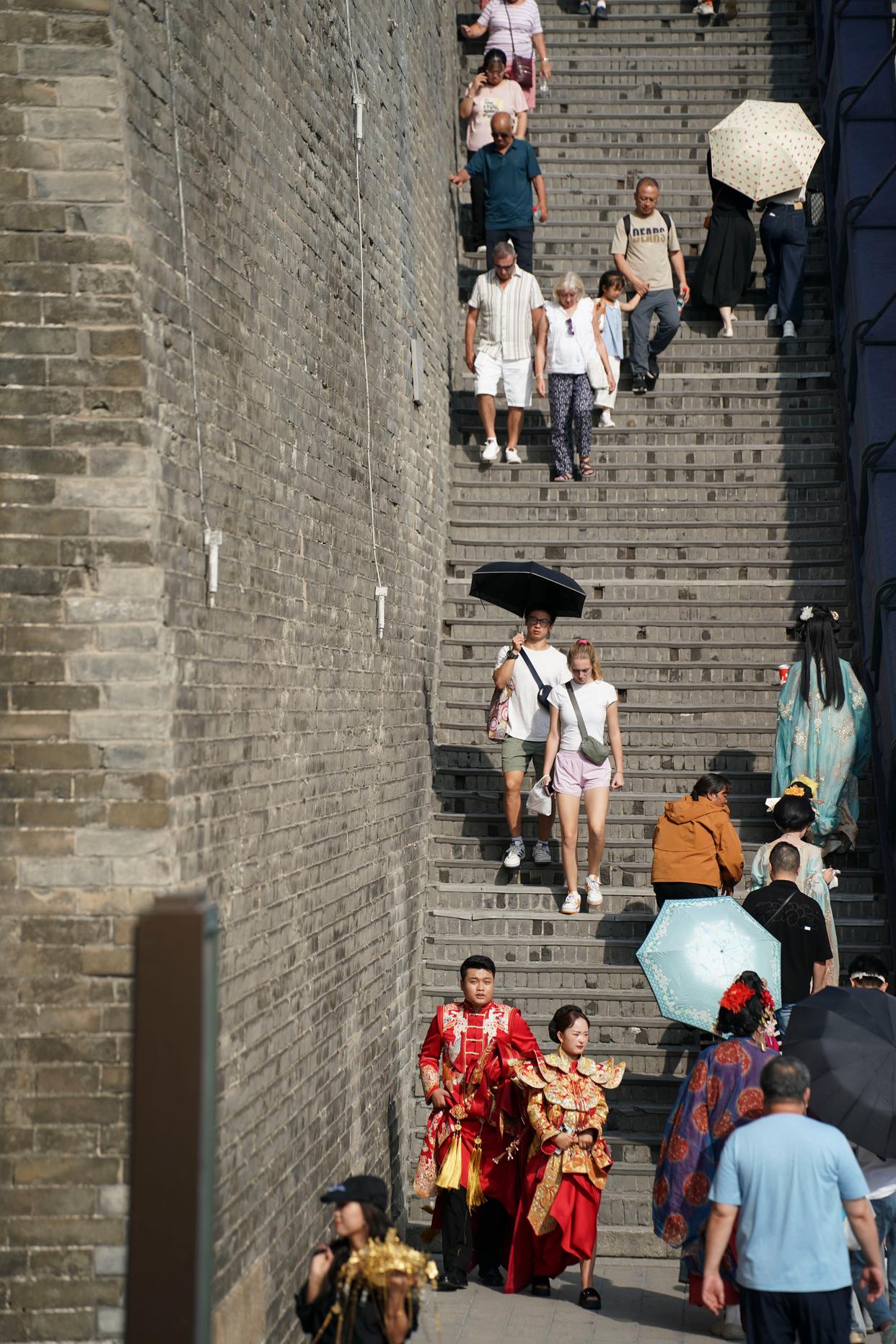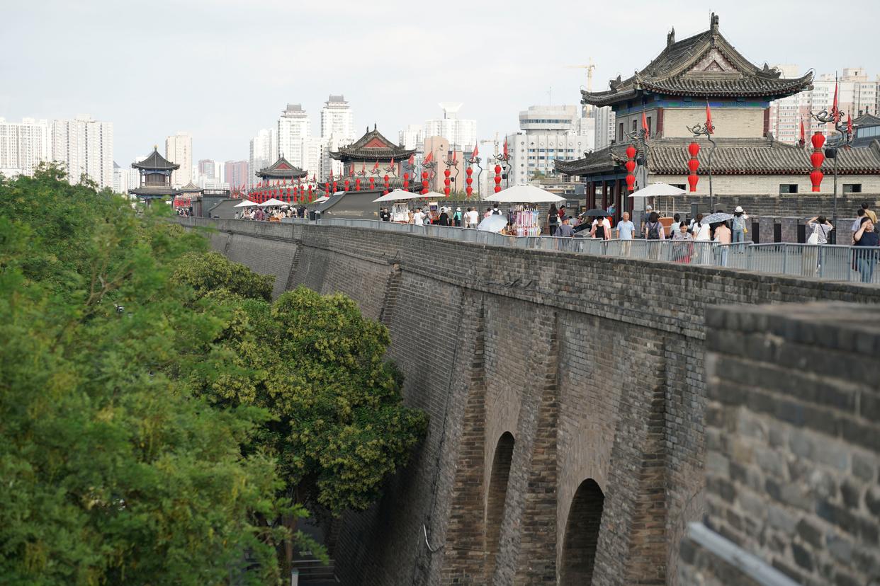 游客在西安城墙上游览(2025年9月12日摄)。新华社记者 朱唯希 摄