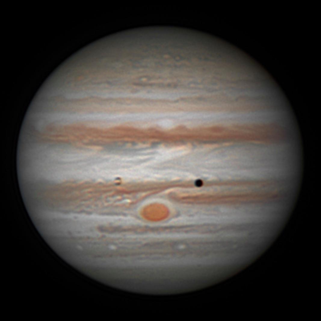 值得一提的是,冲日当晚,公众还有机会同时欣赏到木星大红斑和木星遮掩木卫一。