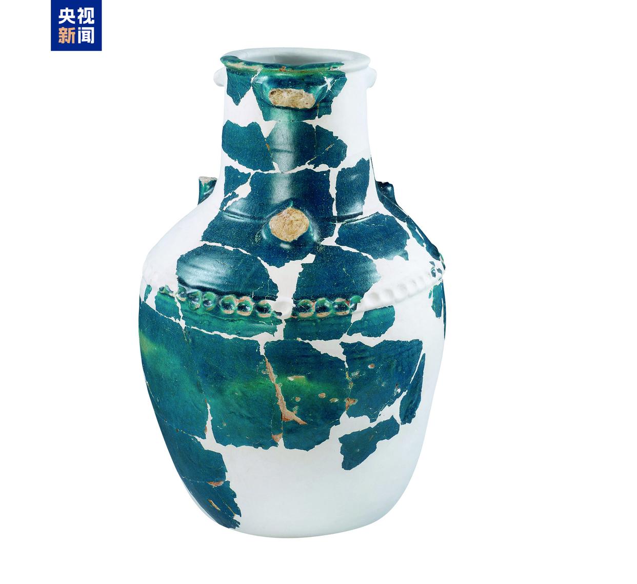 △ 南汉·波斯蓝釉陶三耳大罐,广州市文物考古研究院(南汉二陵博物馆)藏。其釉色属于典型的波斯孔雀蓝釉陶器风格,应是通过海上丝绸之路从波斯湾地区输入中国