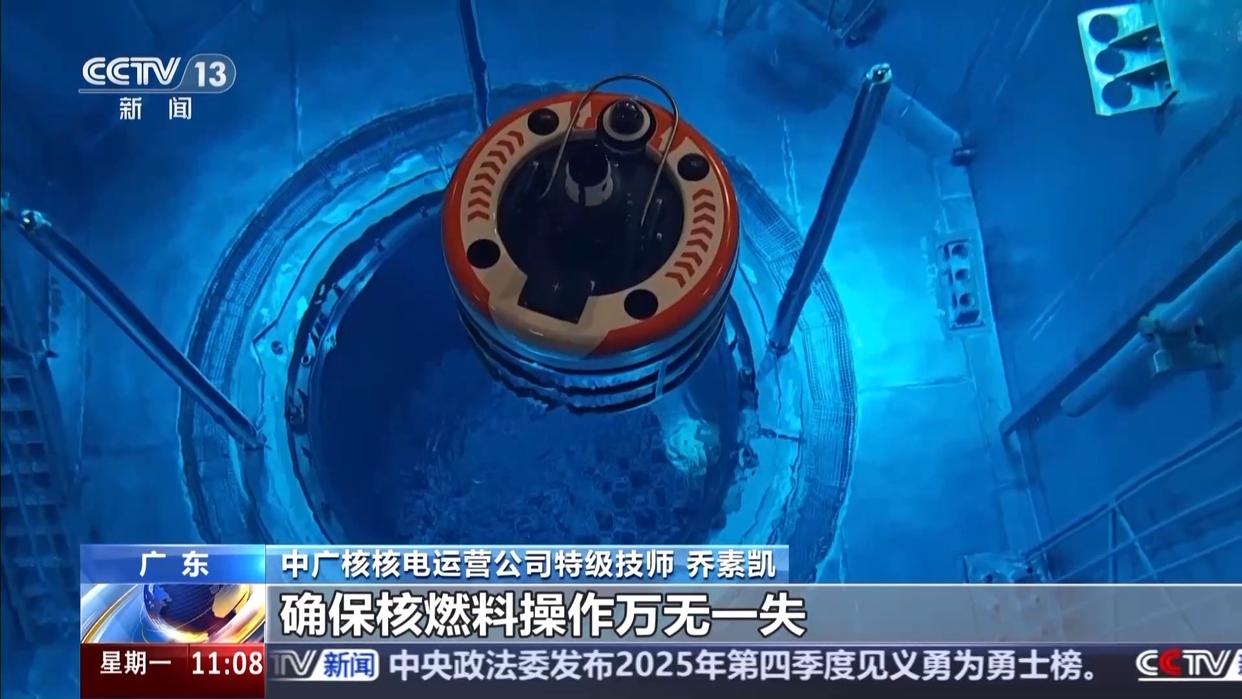 中广核核电运营公司特级技师 乔素凯:我们这次装料要用到新研发的装料巡检机器人,它也是第一次在核电站首次应用,主要用途是为水深18米下的核燃料操作提供高清视频检查和强光辅助照明。