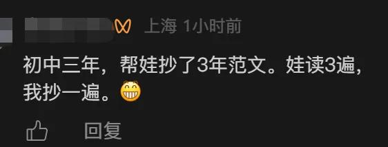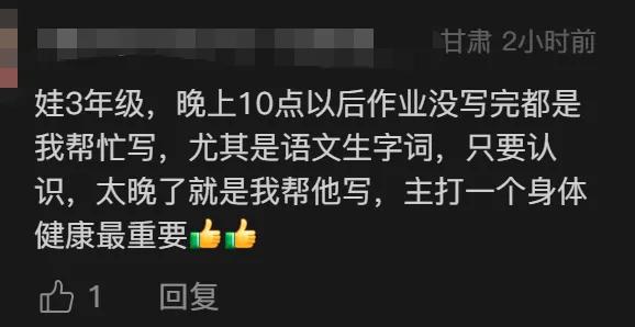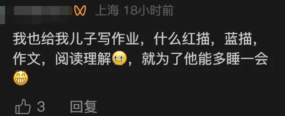 虽然在普通读者眼里,代娃写作业,还要想尽办法营造真实感这件事有点难以想象,但评论区有几千条家长留言,直呼太真实。