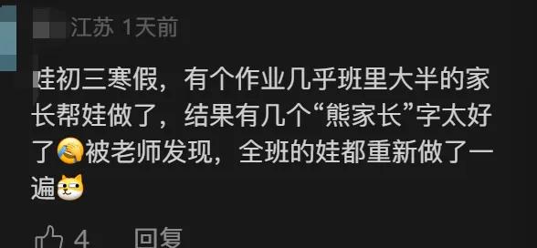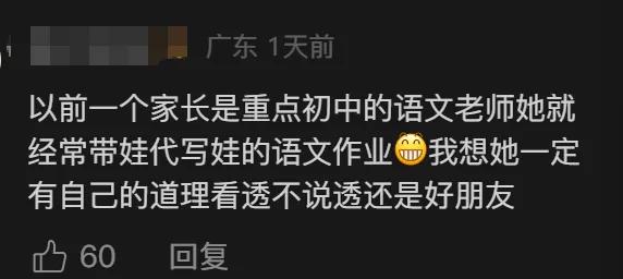 还有网友说:“重点初中的语文老师她就经常代娃写语文作业,我想她一定有自己的道理。”