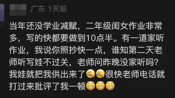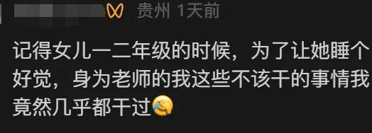 评论区甚至还有老师“自曝”:“记得女儿一二年级的时候,为了让她睡个好觉,身为老师的我这些不该干的事情我竟然几乎都干过。”