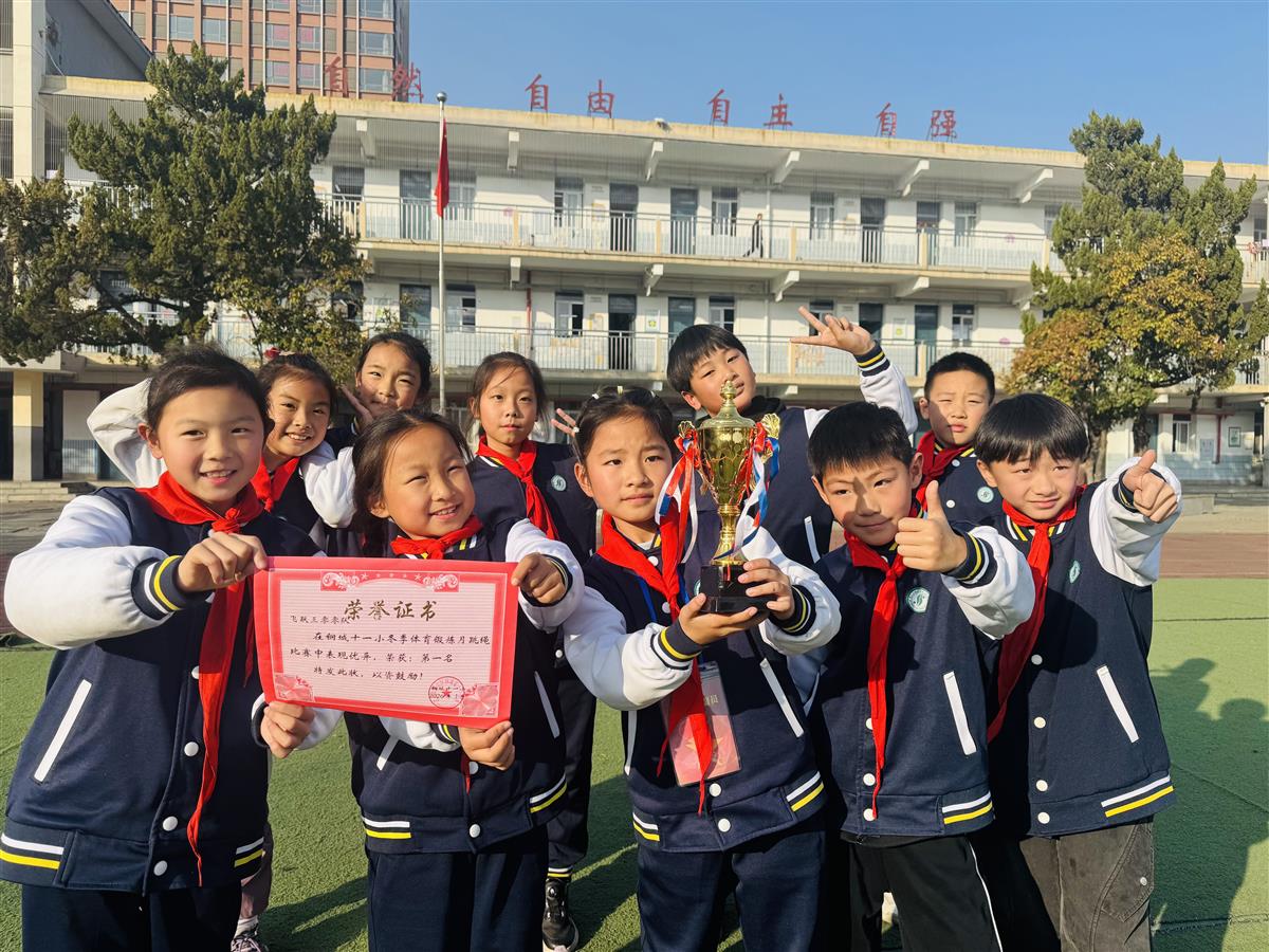 看着孩子们手捧奖状和奖杯,班主任王思思老师眼中满是欣慰:“近期孩子们跳长绳的积极性很高,体育课、阳光活动课、阳光大课间、课间活动都是以跳长绳为主,我们还取名‘飞跃三零零队’,定下每次训练挑战300个的目标。从最初的磕磕绊绊到如今行云流水,运动带给孩子们的不仅是体能的提升,更是意志的淬炼和团队的凝聚。”