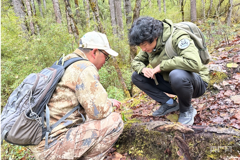 “小时候跟着父亲来这儿,那时候山上没路。”巡护员梁春平回忆,小学毕业那年,他曾因洪水徒步两天才走出山区,而如今,山里通往外界的道路已然通达,巡护装备也从“两条腿”升级成了无人机、红外相机。自1997年正式加入王朗保护队伍,这是梁春平坚守的第28个年头。巡护途中,他脚步轻缓地穿行在密林间,蹲下身拨开落叶,指着一团粪便介绍:“这是熊猫的粪便,从咬断的竹节长度能判断它最近的活动轨迹。”他说,“现在野生动物遇见率比20年前高了太多,路上遇见野猪不稀奇,金丝猴常在驻地对面的树上活动,羚牛群也在路边吃草。”