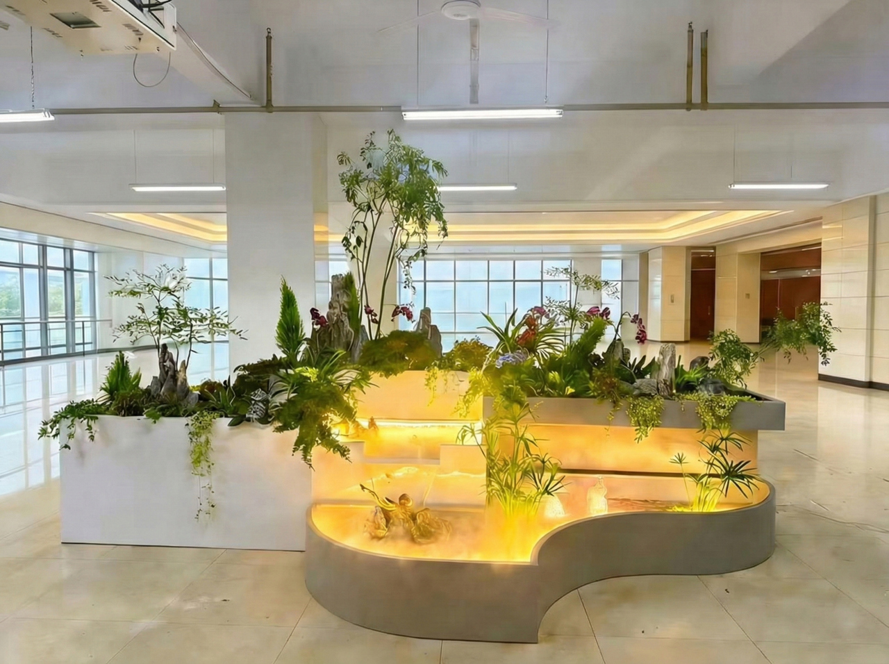 “赛前压力很大,总在担心对手会不会有更亮眼的技术或更低的成本,”吴兆泽回忆,这种危机感促使他们不断推演、完善。优化涉及各个方面:为适应大堂空间与降低维护成本,他们将初始冗长的箱体设计精简优化;为让AI智能体的回应更精准高效,他们反复调试、剔除冗余对话。为确保景观四季有景,他们筛选、更替植物配置,使其能适应不同季节的生长特性;甚至连管线布局都从最初的分线杂乱到内部结构的整洁与可靠。