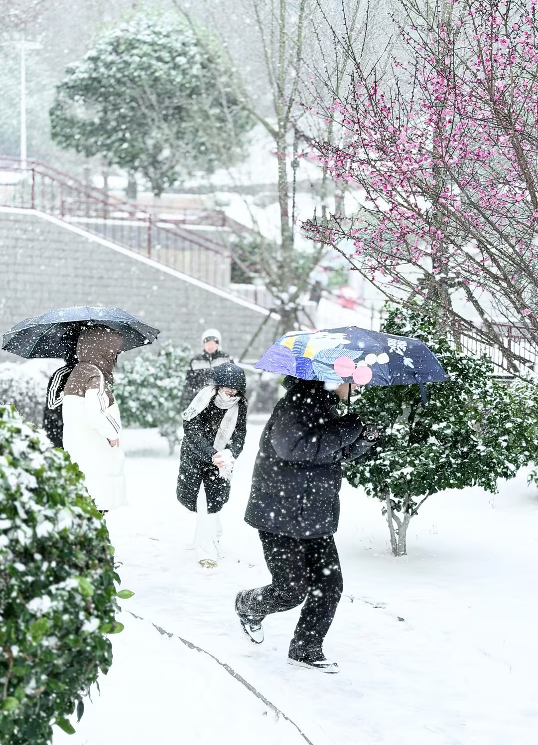 美景之下,安全始终是校园的首要牵挂。学校早已提前筹备,在教学楼门口、食堂入口、台阶转角等易滑路段,整齐铺设了橘红色的防滑垫。那一抹鲜亮的色彩在白雪的映衬下格外醒目,像冬日里的暖阳,为师生们筑牢了第一道安全屏障。即便如此,积雪覆盖的路面仍有隐患,有些同学自发拿起扫帚、铁锹,主动加入到扫雪队伍中。他们动作虽显稚嫩却格外认真;有的清理台阶缝隙的残雪,生怕留下一丝隐患;还有人守在防滑垫衔接处,轻声提醒过往同伴“小心脚下,这边垫了垫子”。冻红的双手、额头渗出的细密汗珠,都彰显着少年们的责任与担当。