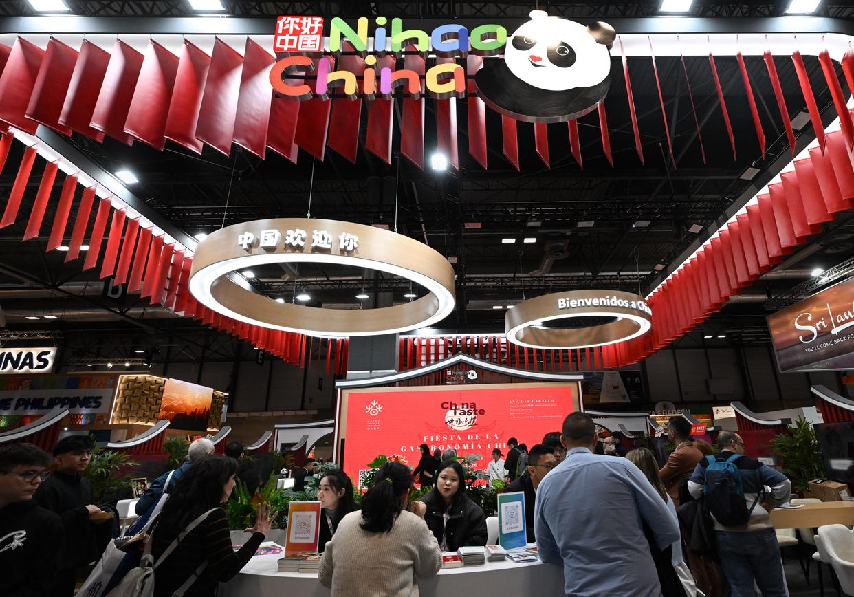 这是1月21日在西班牙马德里拍摄的中国展台。新华社记者 程敏 摄