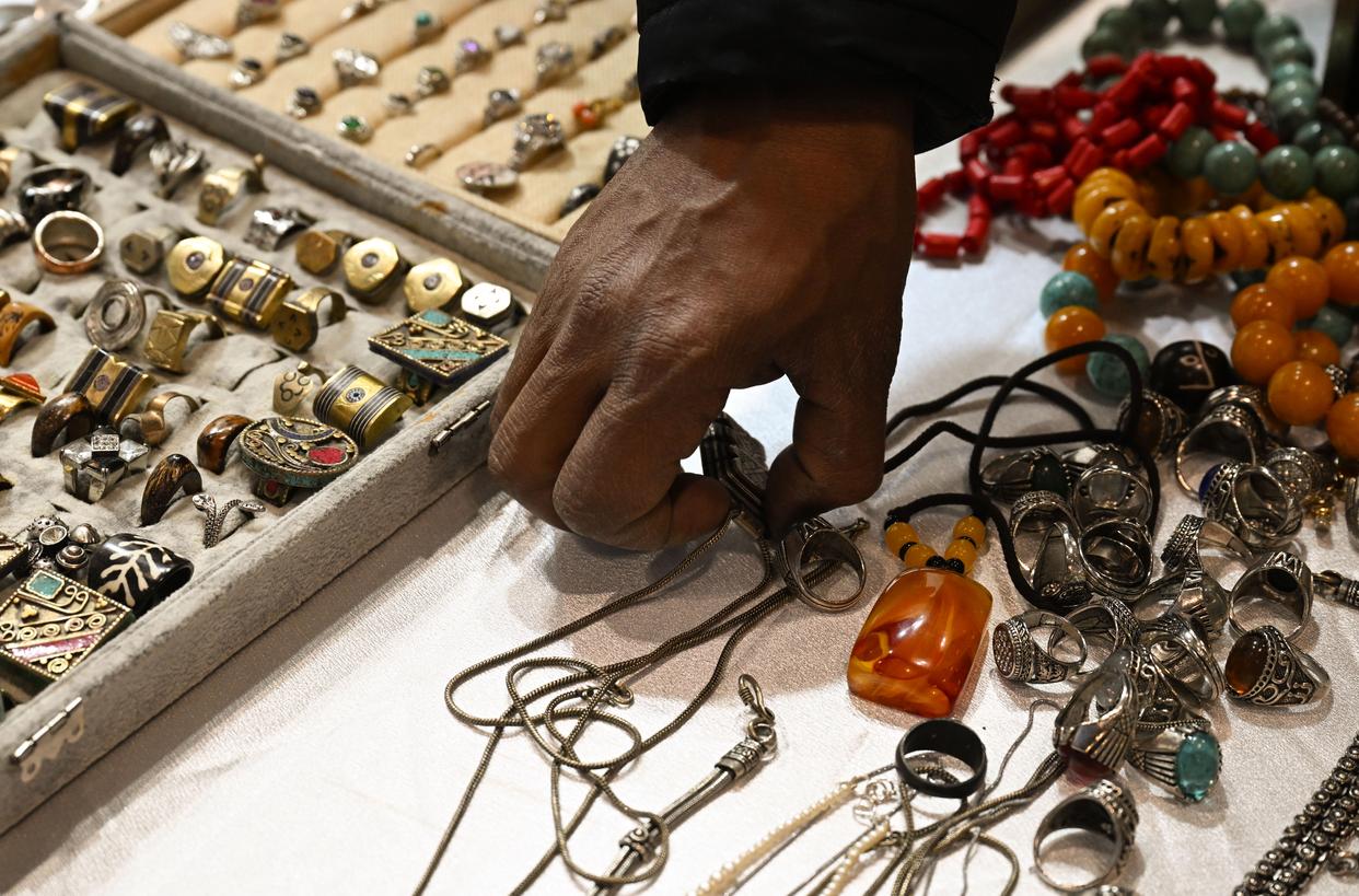 这是1月21日在西班牙马德里拍摄的毛里塔尼亚展台展示的工艺品。新华社记者 程敏 摄