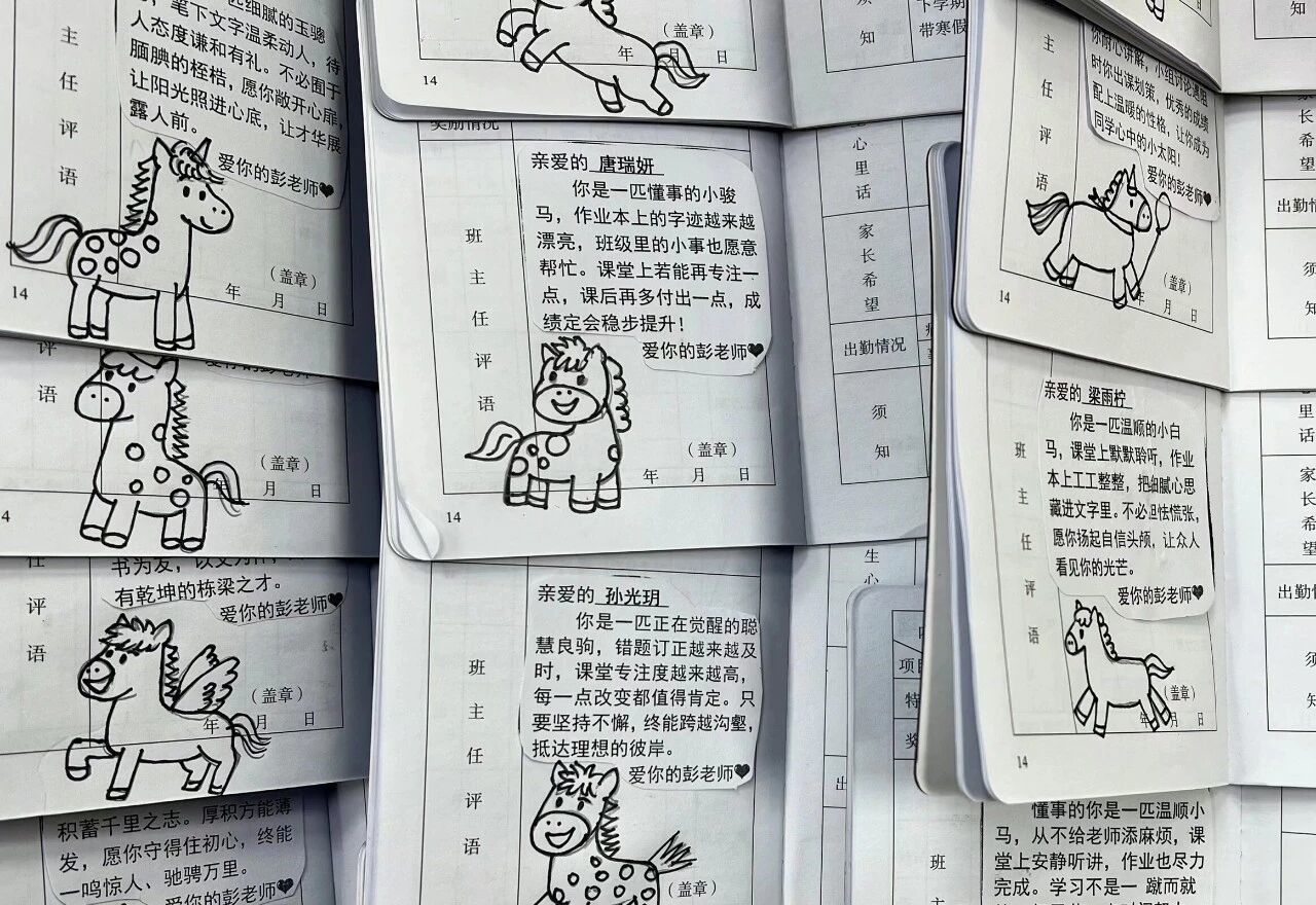 Q萌简笔画、治愈小诗、解谜卡片、成长密码……老师们写下、画下的评语各有精彩。“在我校,评语早已跳出‘评价’的刻板框架。大家的共识是,打破‘唯分数论’,让孩子从有温度、有心跳、好玩又戳心的评语中读出‘自己的闪光点有被看到’。”该校校长高洪琳说。