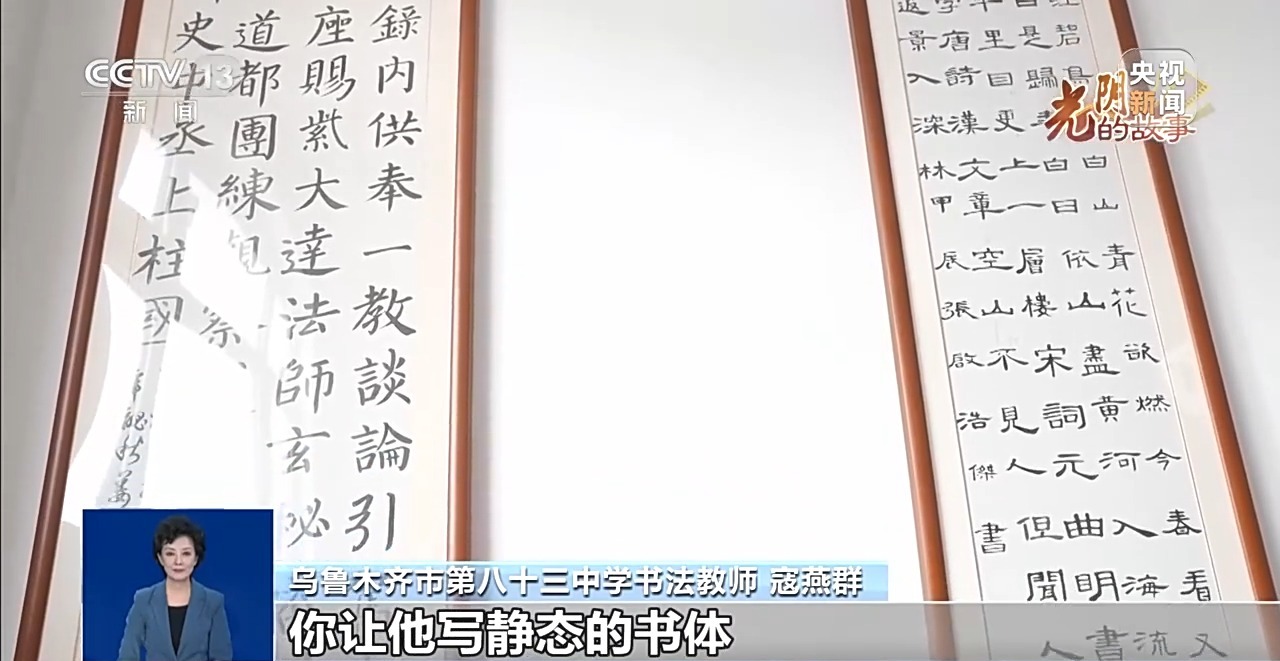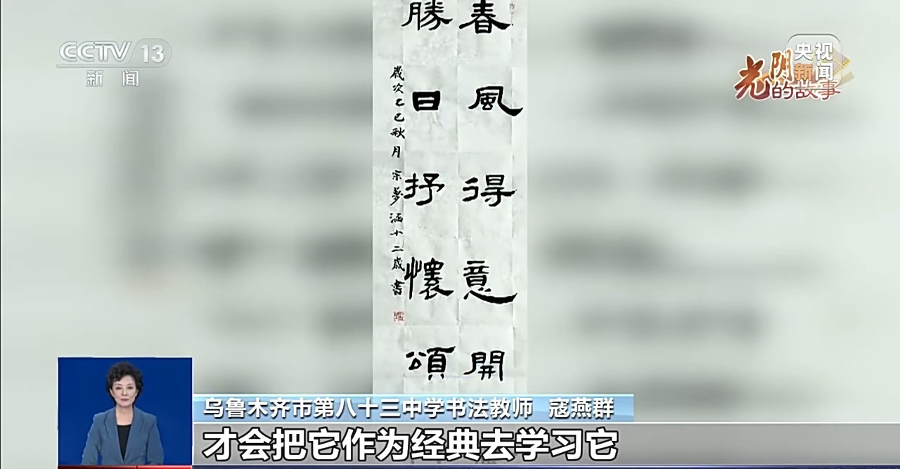 乌鲁木齐市第八十三中学书法教师 寇燕群:见字如人,最后我们留下来的就是要双修,就是人品、字品都要好,才会把它作为经典去学习。要讲到人品,他会去关爱别人,给出去爱,肩负起责任。