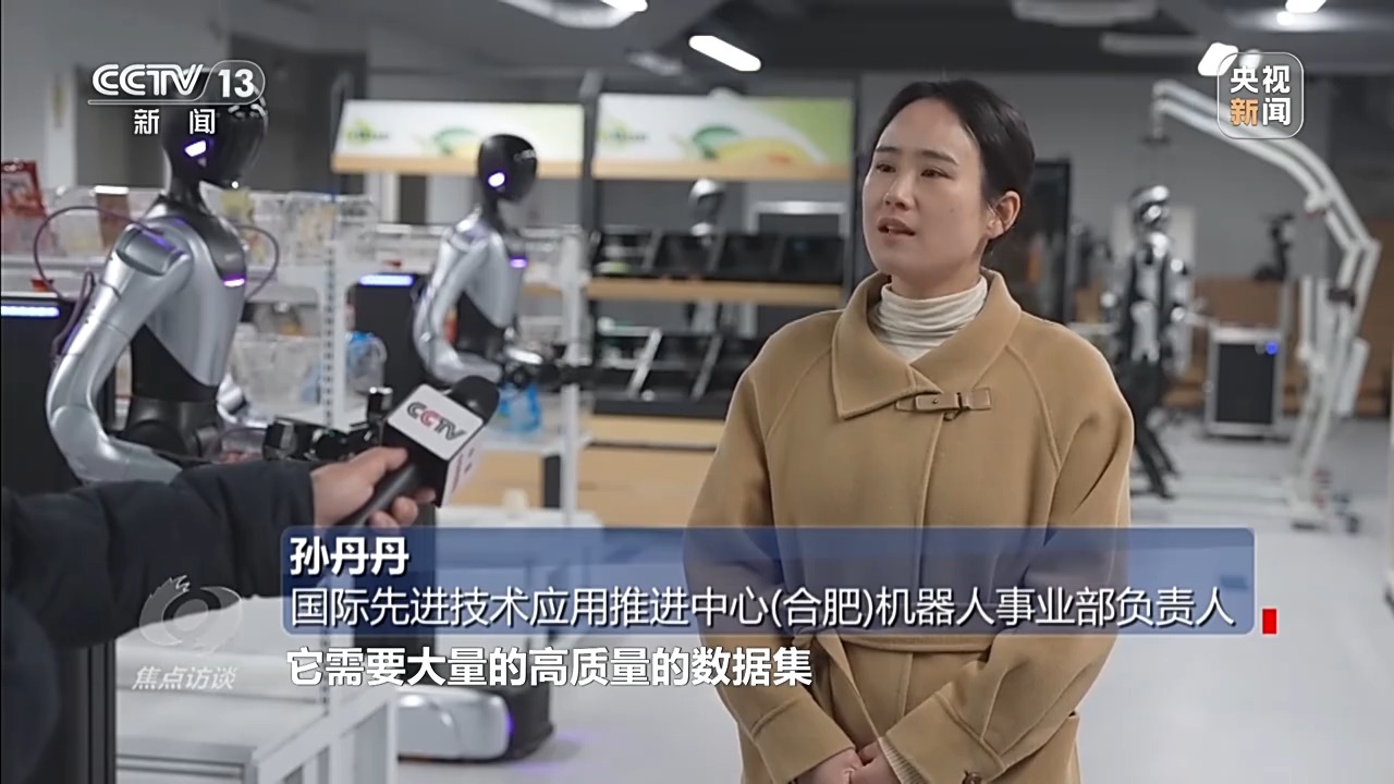 国际先进技术应用推进中心(合肥)机器人事业部负责人 孙丹丹:“数据荒”是行业的共识问题,现在的具身智能大模型需要大量的高质量数据集去训练它的模型、优化它的算法,不断迭代,然后才能够满足机器人在真实场景的应用。