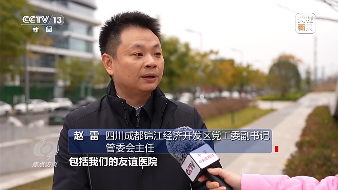 四川成都锦江经济开发区党工委副书记、管委会主任 赵雷:以锦江区为例,成都的华西医院三个院区,包括锦欣脑科医院、友谊医院,包括电子科大和我们合作,一起在电子科大系下面的成都肿瘤医院、四川绵阳中心医院积极搭建平台、场景对接活动。