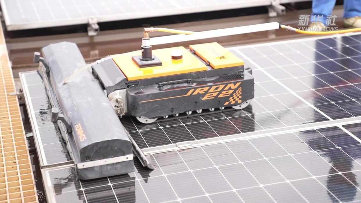 “因为在屋顶上,它的粉尘会污染光伏表面,导致我们的光伏发电效益降低,所以要定期每一个季度清洗一次。传统人工清洗存在覆盖不均、效率不高等问题,今天我们尝试引入智能清洁机器人实现更高效彻底的清洗。”在巡查现场可以看到,正好集团青田分部新能源事业部朱海鹏一边介绍,一边操控一台清洗机器人登上了光伏阵列。通过手动遥控控制的机器人沿导轨平稳运行,配合旋转刷毛与喷水系统,对板面进行逐排深度清洁。与此同时,服务团队还利用专业设备对光伏方阵倾角、支架牢固度、逆变器运行参数及潜在热斑等进行了全面排查。