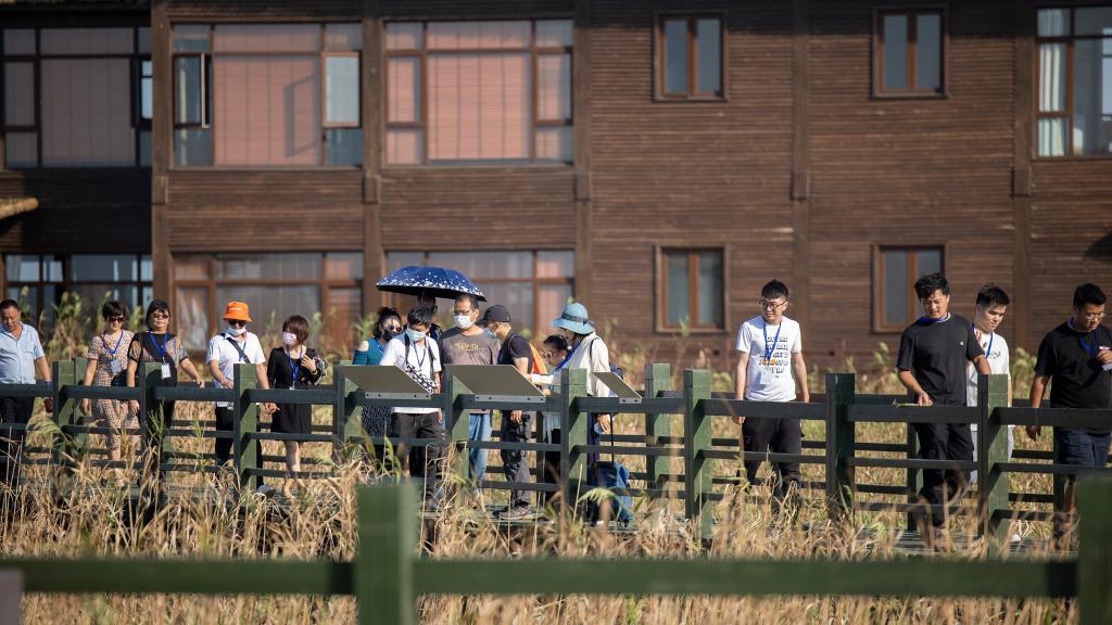 公众在上海崇明东滩鸟类国家级自然保护区科普教育基地参观。