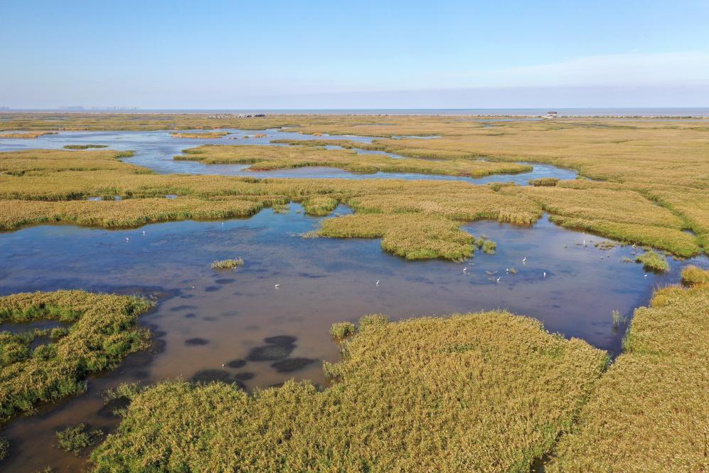 俯瞰上海崇明东滩鸟类国家级自然保护区(2020年10月25日摄,无人机照片)。