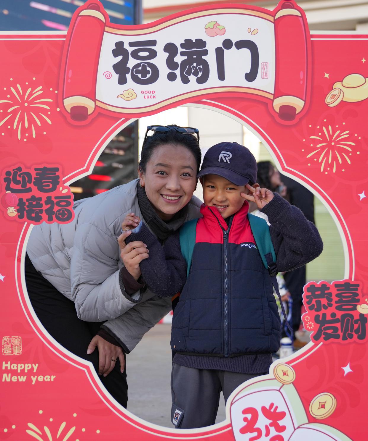 3月2日,在西藏拉萨市江苏实验幼儿园,孩子和家长在拍照留影。新华社记者 晋美多吉 摄