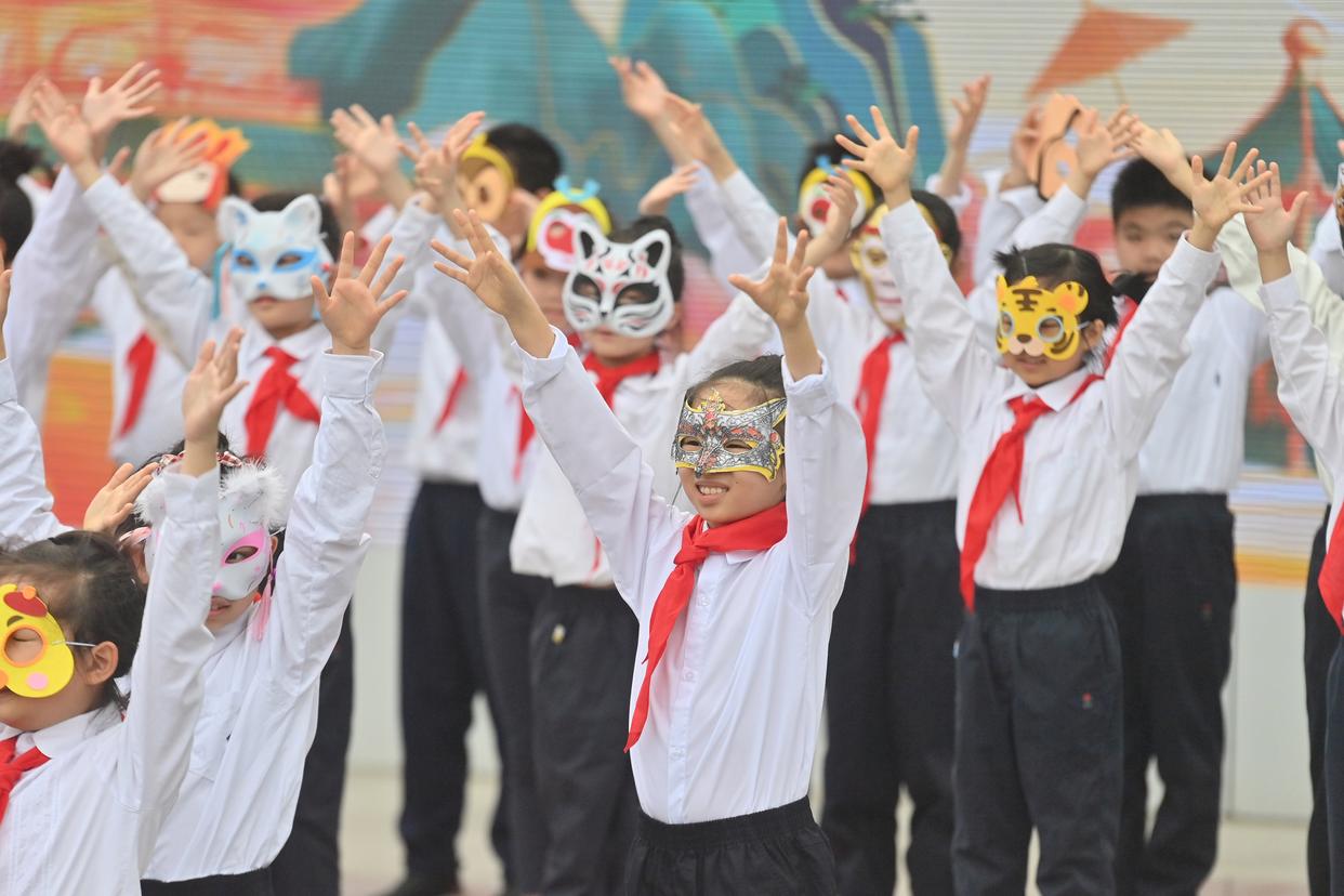 3月2日,在广西南宁市滨湖路小学,孩子们在开学典礼上进行情景表演。新华社记者 黄孝邦 摄