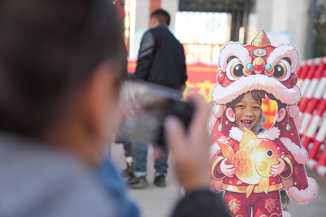 3月2日,在西藏拉萨市江苏实验幼儿园,家长为孩子拍照留影。新华社记者 晋美多吉 摄
