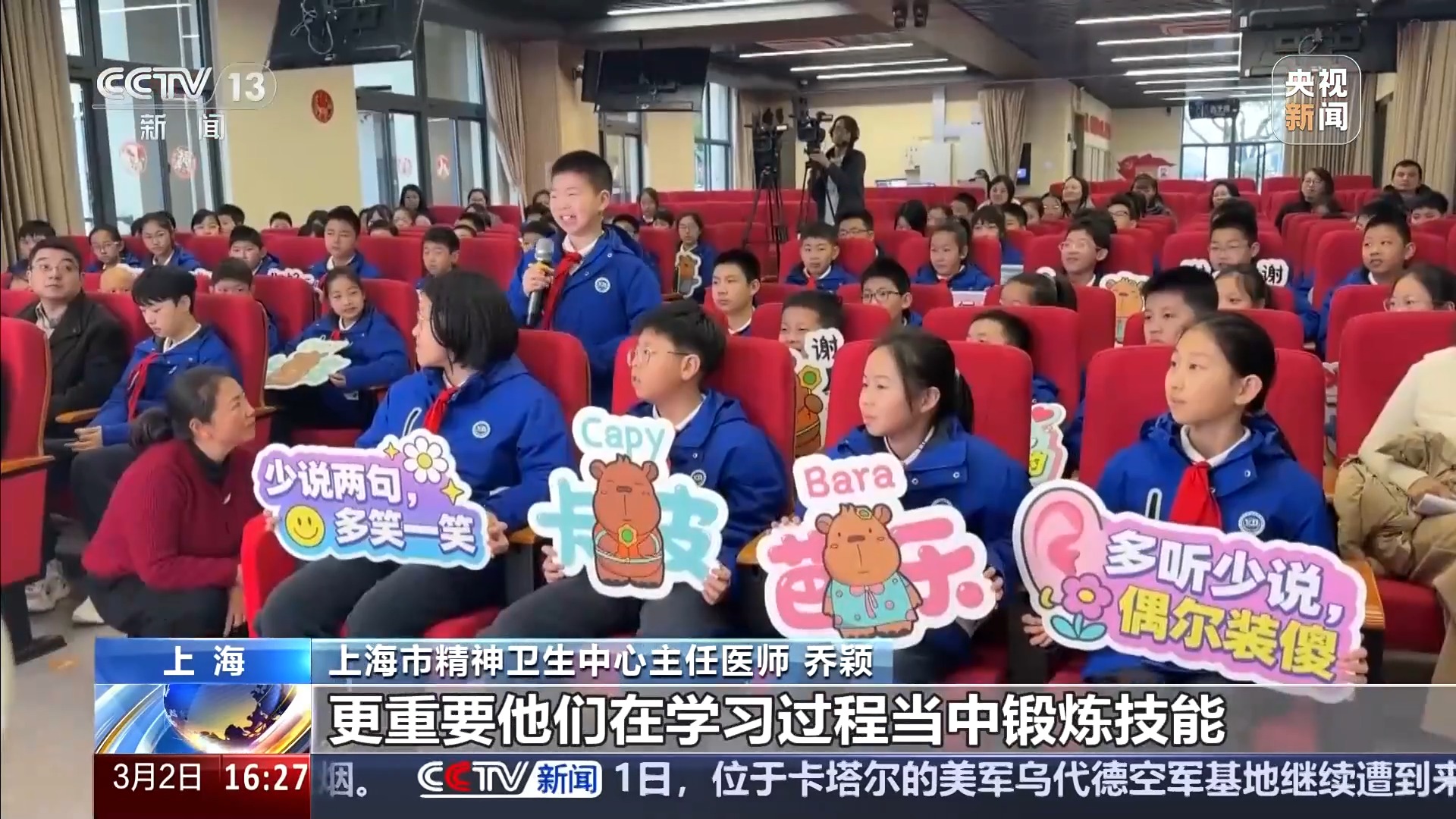 上海市精神卫生中心主任医师 乔颖:我们的孩子,他在人生过程当中,不仅仅是为学习而生存的,更重要他们在学习过程当中锻炼技能,我们的家庭氛围,孩子的身体健康的一个体能锻炼,心理的一个保障,同样是我们家长热切需要关注的点。