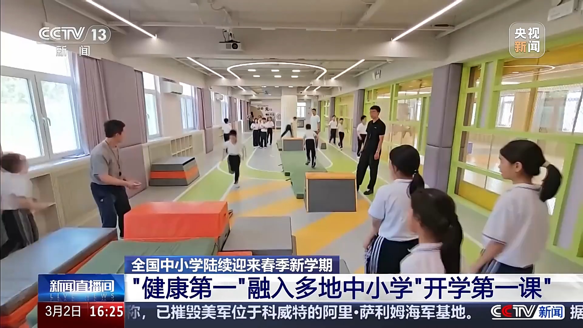 在北京,不少中小学把“健康第一”定为“开学第一课”的主题。在北京市七一小学,足球、篮球、健美操等五名体育小将活力登场,一一介绍新学期最想挑战的运动技能。学校还设置了新学期“逐梦赛场”体育赛事发布环节,包括足球篮球联赛和田径比赛等,点燃孩子们的体育热情。