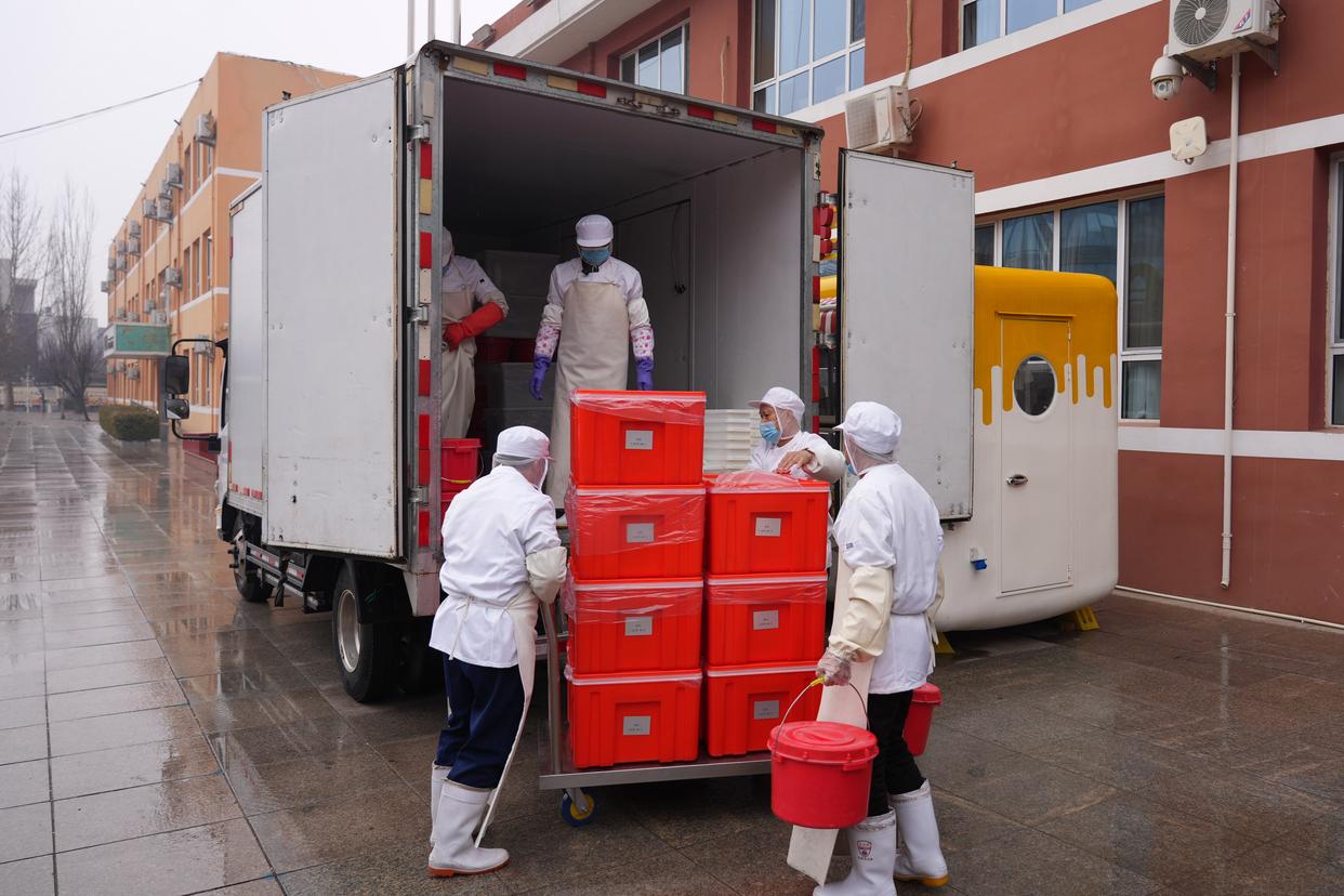 3月2日,首都师范大学附属小学工作人员将食堂做好的饭菜装车,准备送往该校柳明校区,实现“校校有食堂”。新华社记者 谢晗 摄