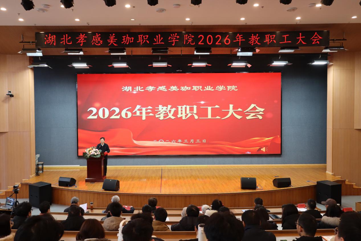 3月3日,湖北孝感美珈职业学院2026年教职工大会在图书馆报告厅举行。全体校领导、教职工齐聚一堂,共同回顾过去一年的奋斗历程,展望新一年的发展蓝图。
