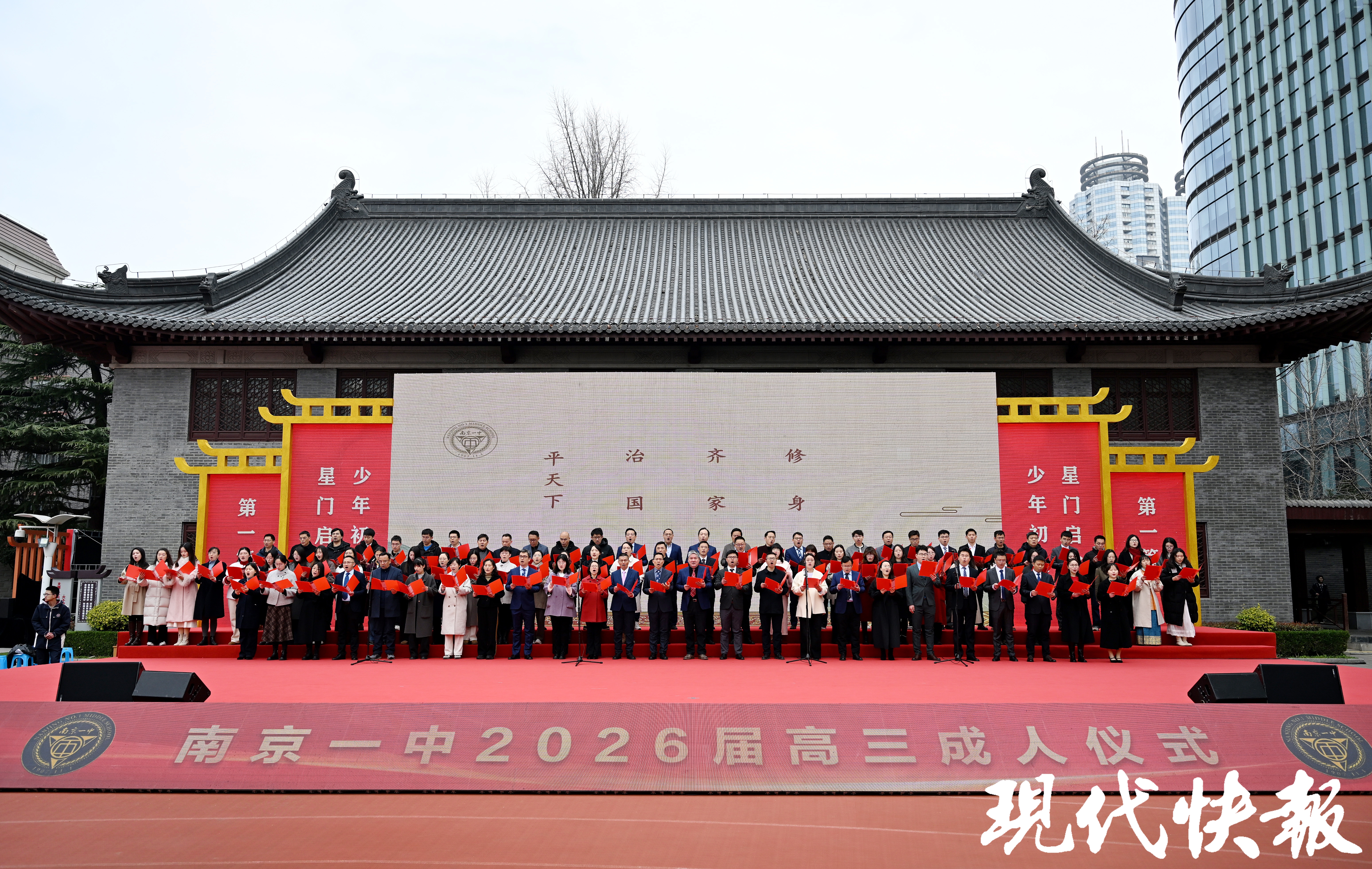 2026年3月8日,南京市第一中学以“崇文志青春求真致未来”为主题,举行2026届高三18岁成人仪式。学校打开正门迎接千名高三学子,他们在父母和老师的见证下,迈向成年。一个个动人环节,展现了一中的教育温度。