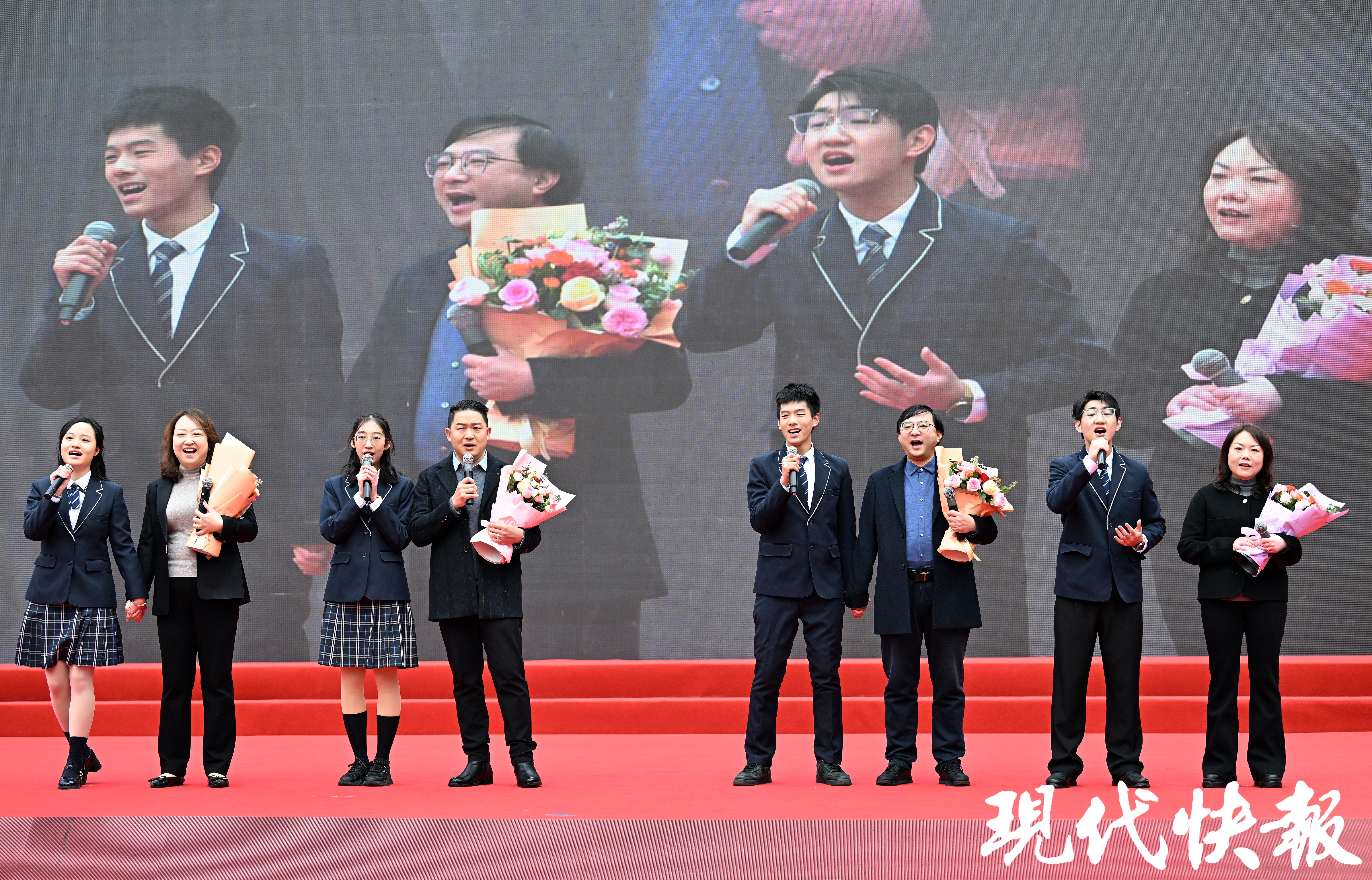 18岁,是父母陪伴着孩子成长的18年,学子们在视频里向父母表达爱与感恩。此时,四位家长带着歌声走向舞台:“时间都去哪儿了,还没好好感受年轻就老了,生儿养女一辈子,满脑子都是孩子哭了笑了……”一首《时间都去哪儿了》,承接亲子合唱《光阴里的爱》。四个孩子也带着歌声走上舞台,他们唱的是一首《父亲》。歌词表达了浓浓的亲情:时光时光慢些吧,不要再让你变老了,我愿用我一切,换你岁月长留……高三(2)班潘星辰和爸爸潘毅搭档演唱,父子俩还有一个共同的身份是一中校友。潘毅透露,他是南京一中1997届的校友,在学校留下了很多美好的回忆。所以在儿子中考填志愿时,也选择了一中。