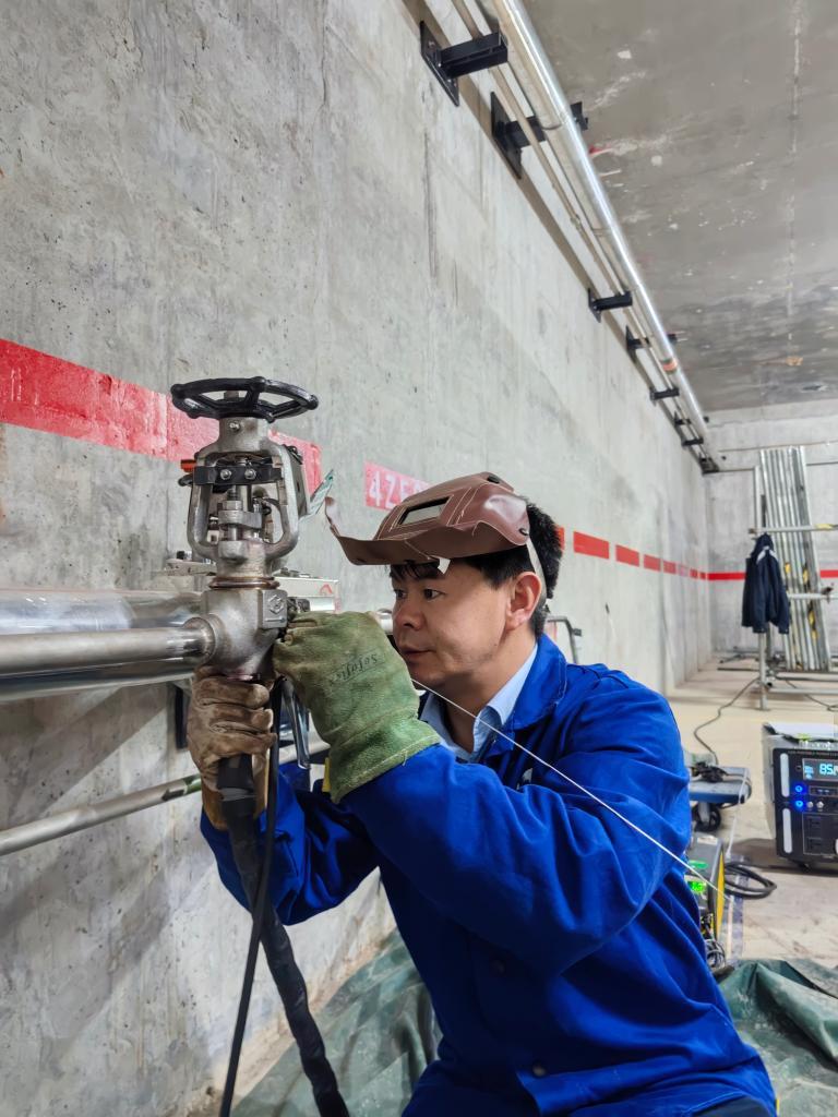 2026年1月25日,师延财在位于福建省福清市的核电厂房内进行焊接作业。
