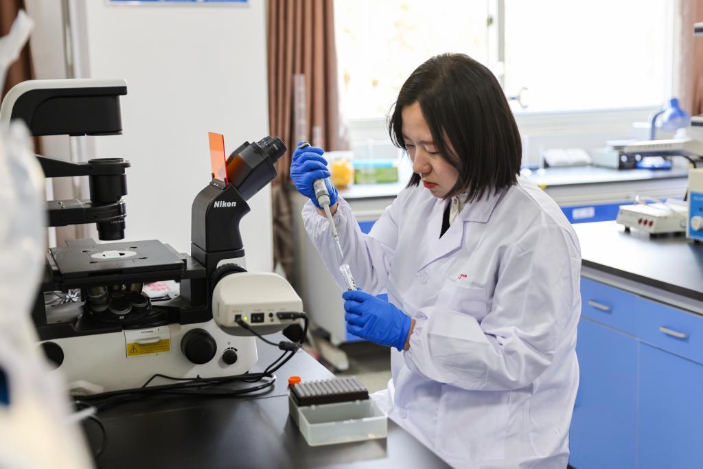 2022年2月21日,王虹在中国矿业大学文昌校区综合楼实验室做实验。