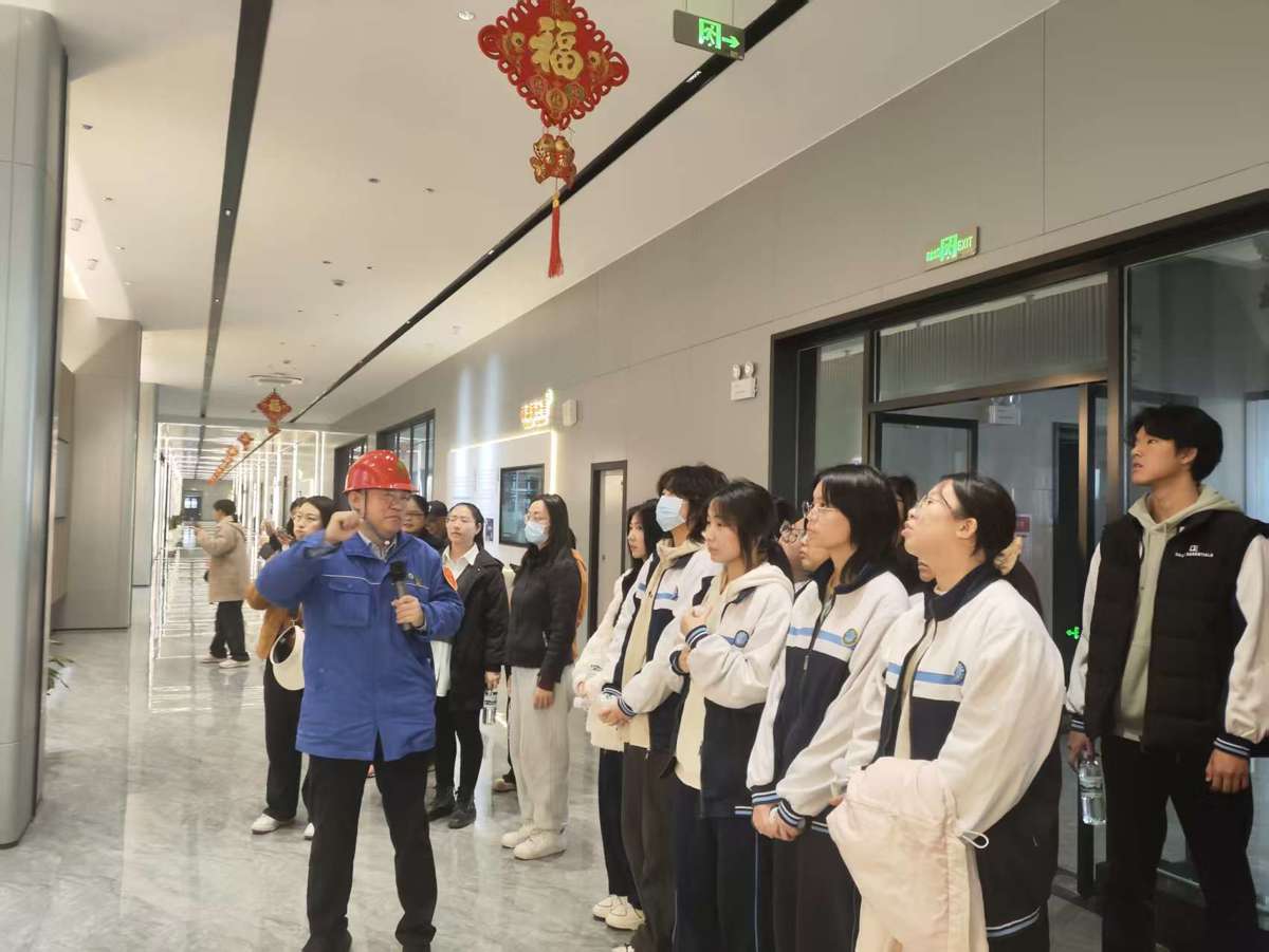 活动首站,同学们便被厂区独具匠心的建筑设计所吸引。据工作人员介绍,该公司的建筑融合了武汉城市文化元素:黄鹤楼的飞檐翘角、长江的奔流曲线、知音文化的协作精神,共同赋予这座现代化工厂深厚的人文底蕴。同学们驻足欣赏时,真切体会到“让工业建筑扎根城市文化”的设计理念,也为企业将环保使命与地域特色相结合的做法点赞。