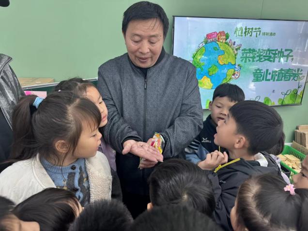 春风送暖,草木萌发,正值第48个植树节,武汉市青山区第一幼儿园红钢城园大班的萌娃们,带着上学期《一起卖个菜》劳动实践活动中收获的“第一桶金”,参加了一场充满童趣与意义的种植活动,在亲手耕耘中体悟劳动的价值,探寻生命成长的奥秘,让春日的幼儿园充满生机与希望。