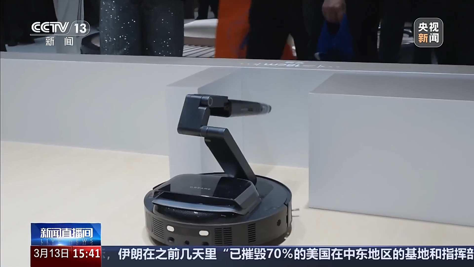 在这里,记者看到许多司空见惯的工具迎来了技术创新,比如扫地机器人它就长出了“眼睛”,它前面两个圆圆的“眼睛”就是它的AI智能识别系统,在它工作的时候,随手扔一个障碍物,它就能非常灵巧地躲避过去。