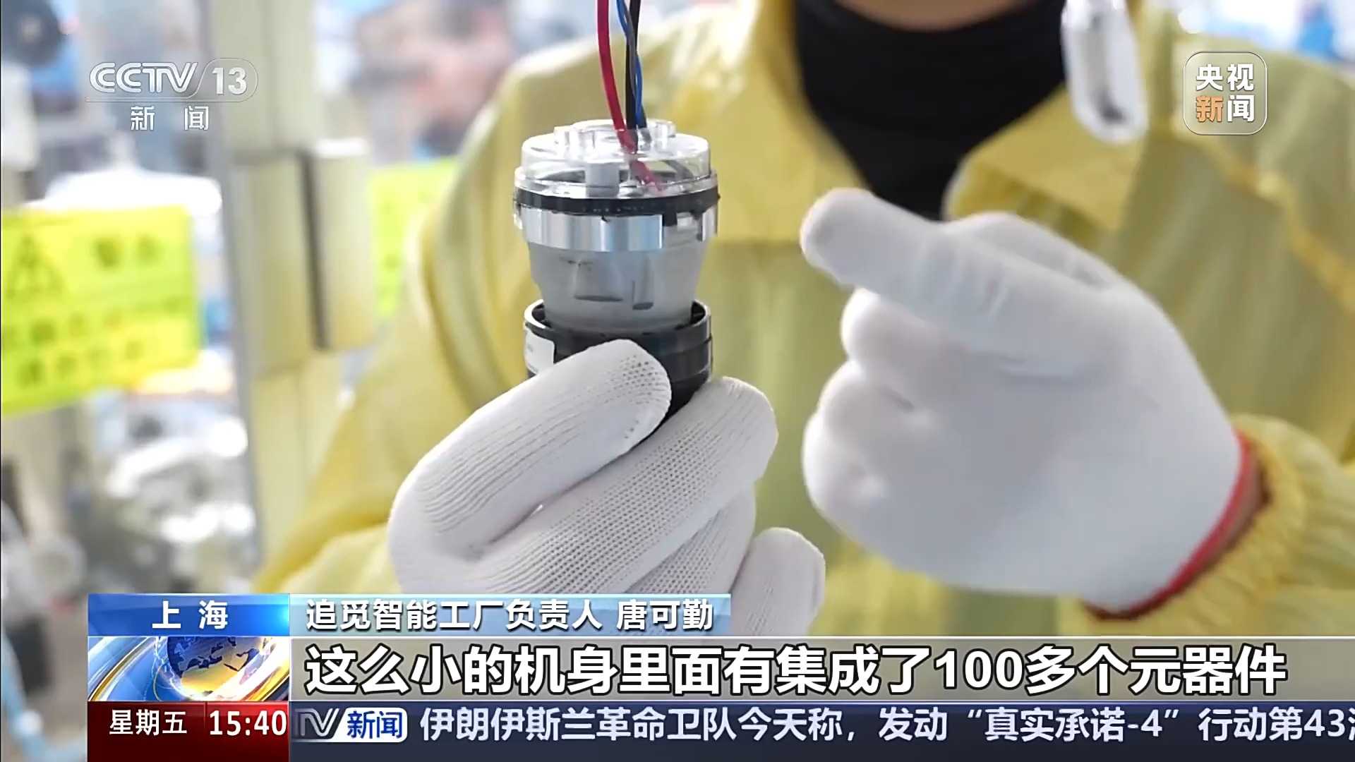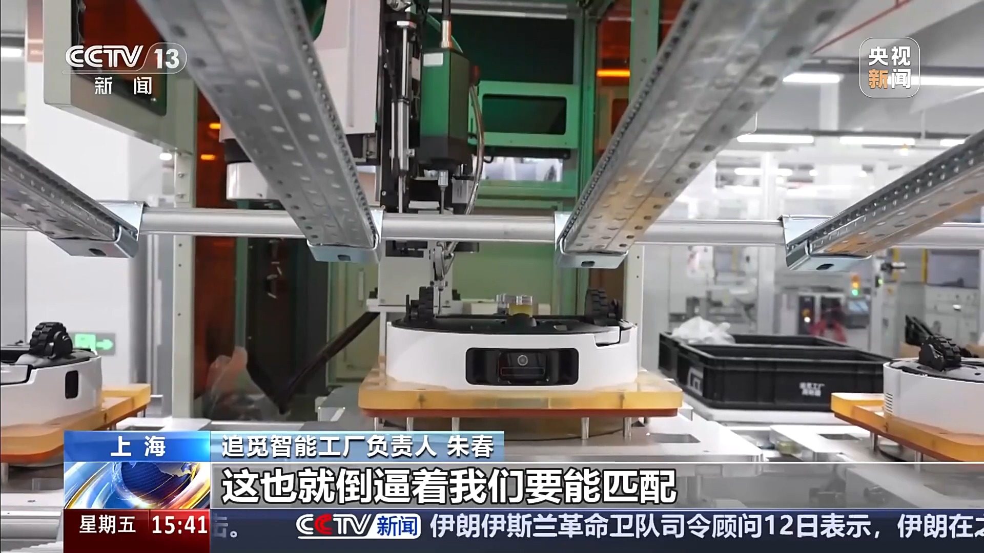 追觅智能工厂负责人 朱春:像AI双目避障以及一些仿生机械足、仿生机械臂,这些都属于我们的前沿技术,产品越智能,它对制造的工艺就要求得越高,这也就倒逼着我们要能匹配高研发、高质量产品的制造能力。像这种关键的一些测试段,它的核心自动化率已经实现了在90%以上。