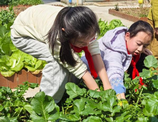 活动现场,同学们热情高涨、分工明确,处处都是忙碌而有序的身影,将雷锋“干一行爱一行、专一行精一行的敬业精神”融入每一项劳动中。在校园花坛区域,同学们手持花苗、小铲子、水壶等工具,小心翼翼地挖坑、放苗、填土、浇水。在学校“半亩花田”劳动基地里,另一批同学正全力投入到农田整理工作中。同学们双手正紧紧抓住萝卜叶,使出浑身力气拔萝卜。随后,又开始整理农田,清除杂叶。“自己亲手拔的萝卜真有成就感,不仅体会到了劳动的快乐,也明白了‘一分耕耘,一分收获’的道理,更懂得了要像雷锋叔叔一样,乐于奉献、团结协作。”同学们拿着自己的劳动成果,脸上满是幸福的笑容。