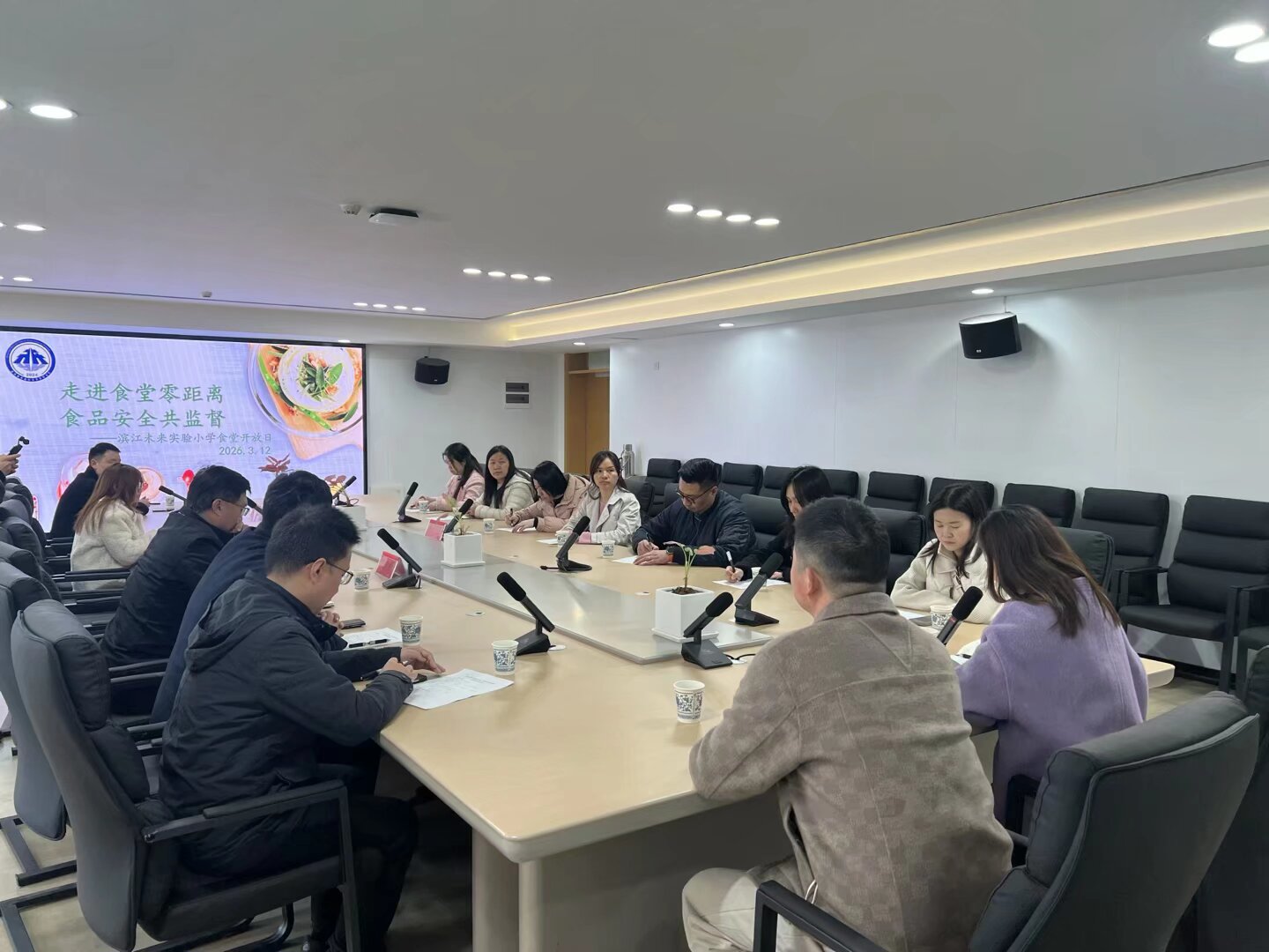参观结束后,一场温馨的座谈交流会如期开展。校方详细汇报了学校食品安全的政策落实、管理框架、食材溯源、营养配餐以及日常监督等工作,主动打开“话匣子”,认真倾听每一位代表的意见建议。交流中,代表们对学校食堂的整洁环境、规范流程和严格管理给予了高度评价,大家畅所欲言,围绕消防安全、学生营养搭配、食材渠道管控等方面,提出了许多贴合实际、富有建设性的建议。