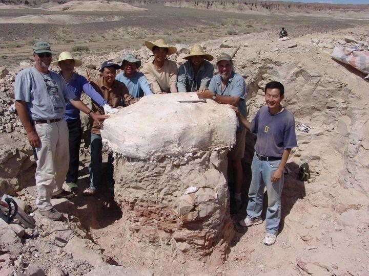 徐星挖到的最大化石有7吨重。“要是化石完整的话,光恐龙脖子就有15米长。”徐星说,遇到特大化石,要是没有大型器械,团队只能就地取材,一点一点把它们运到目的地。