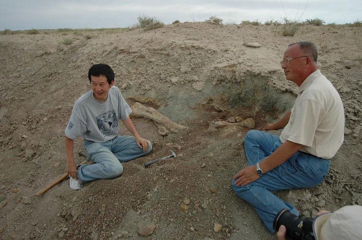 2006年,徐星(左)和谭琳在内蒙古发现巨盗龙化石。受访者供图