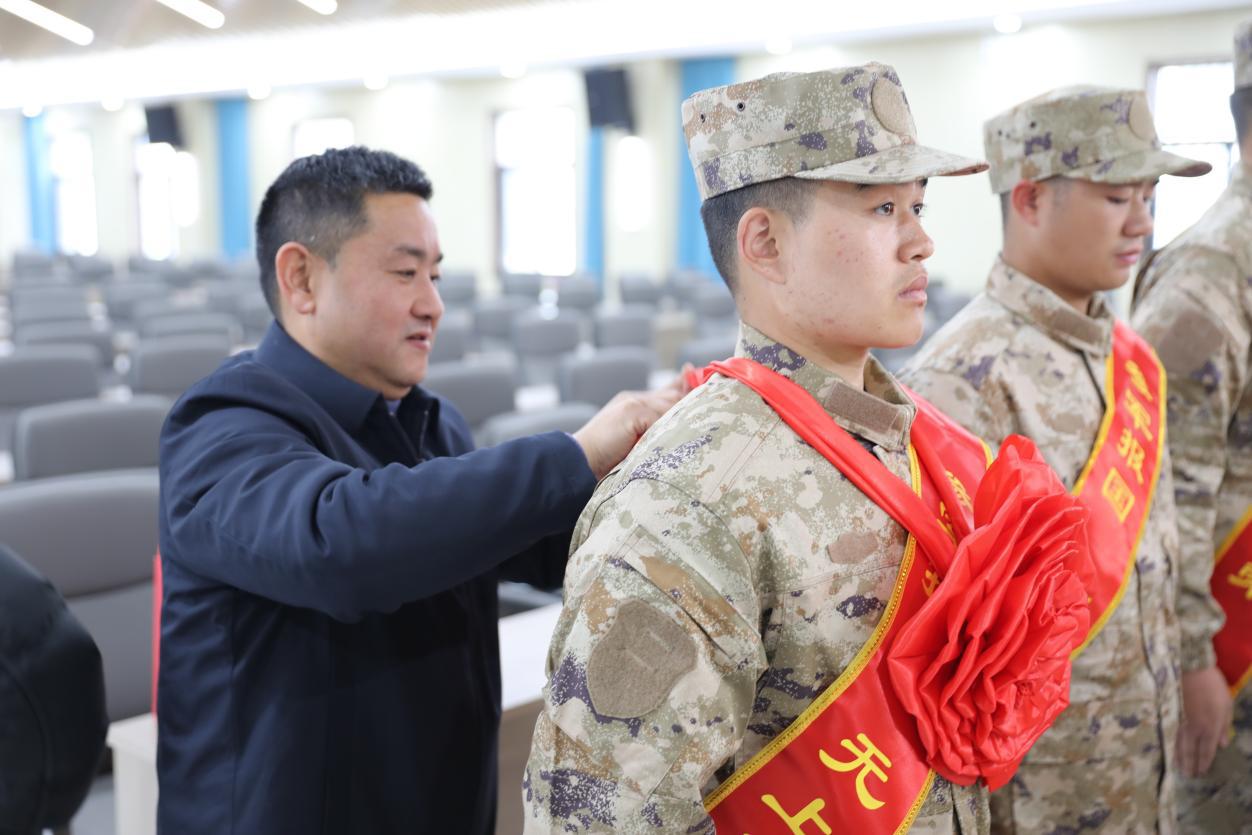 湖北经济学院法商学院党委副书记、副院长杨宏斌在欢送仪式上结合自身履历分享军旅生涯感悟,勉励同学们牢记母校“明德尚学 笃行致新”的校训精神,寄语大家:“坚定政治立场,提高政治站位;锤炼作风品格,练就过硬本领;永葆忠诚本色,勇战善战能赢。”