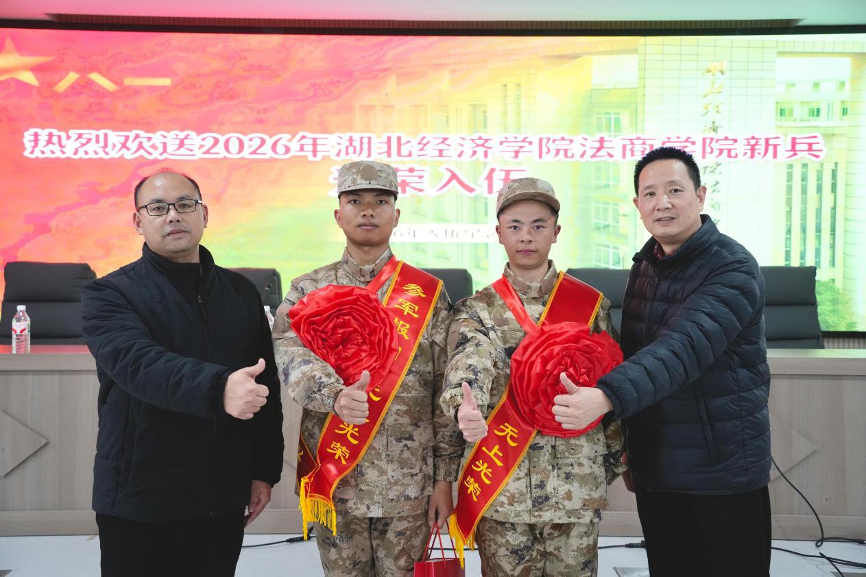 “今天,让我们以最热烈的掌声,送别即将穿上戎装、奔赴军营的法商学子!从大学校园到绿色军营,从寝室课堂到练兵沙场,你们做出了当代青年最热血、最光荣的选择!”3月18日,湖北经济学院法商学院辅导员鲁聪老师将大学期间最后一堂主题讲评课,开进了武汉市江夏区人武部预定新兵役前教育训练基地。台下认真聆听这“最后一课”的学生,正是该校26名2026年春季参军入伍学子,他们即将奔赴祖国各地军营,继续抒写青春芳华。