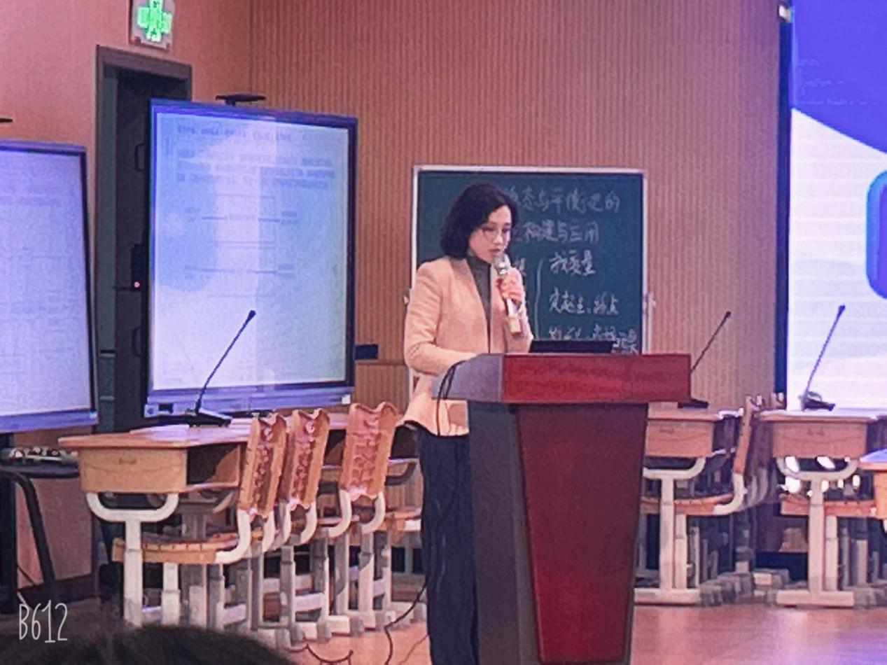 十二中教研组长陈凤妮分享“思维进阶式课前导学”模式,通过梯度设问、预习检测等环节,破解学生情境题、实验题等失分问题,实现课前导学与课中探究有效衔接。